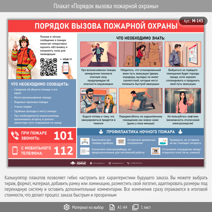 Плакат «Порядок вызова пожарной охраны» с QR (М-143, 1 лист) в Старом Осколе купить