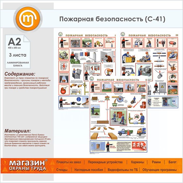 Плакаты «Пожарная безопасность» (С-41, ламинированная бумага, А2, 3 листа) в Старом Осколе купить