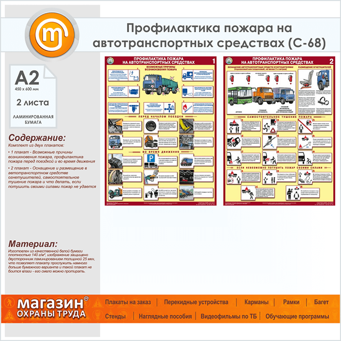 Плакаты «Профилактика пожара на автотранспортных средствах» (С-68, ламинированная бумага, А2, 2 листа) в Старом Осколе купить