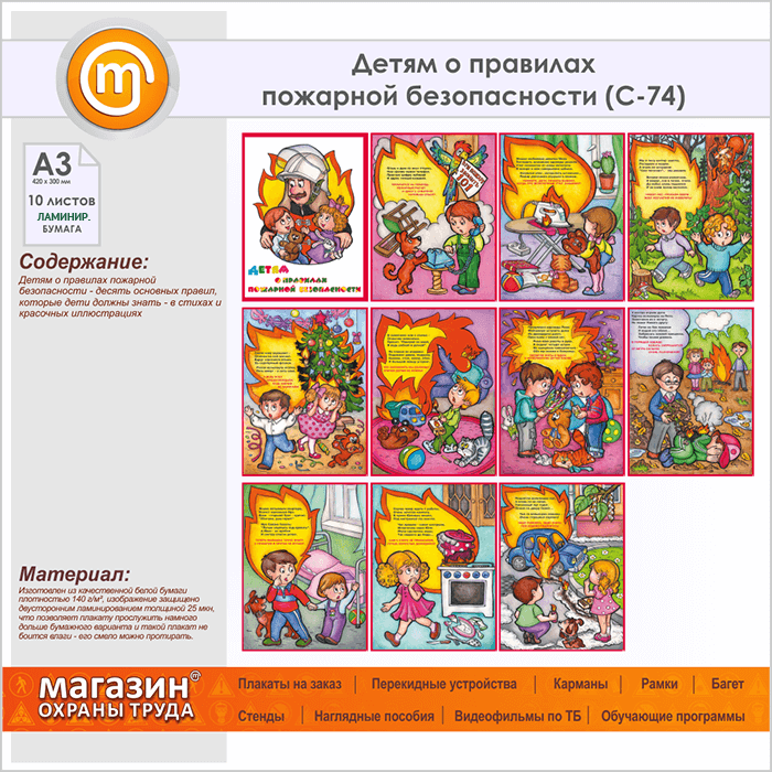Плакаты «Детям о правилах пожарной безопасности» (С-74, ламинированная бумага, А3, 10 листов) в Старом Осколе купить