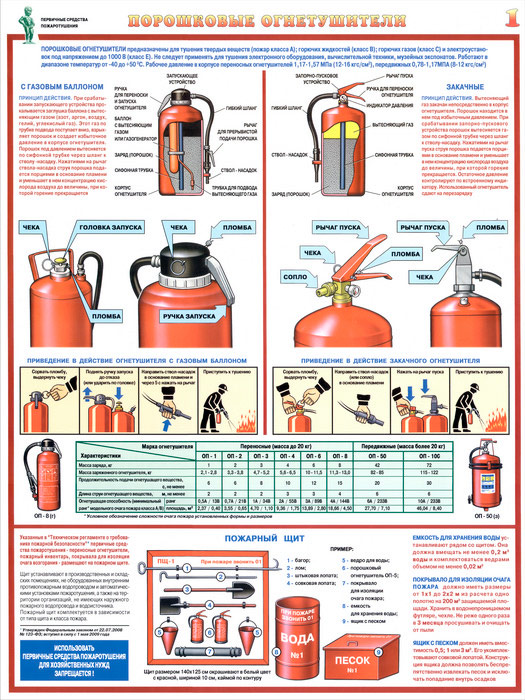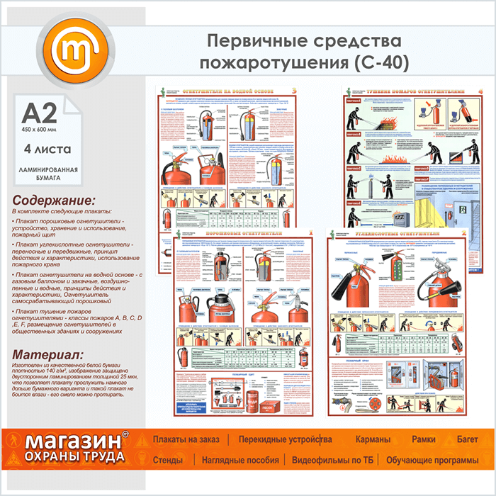 Плакаты «Первичные средства пожаротушения» (С-40, ламинированная бумага, А2, 4 листа) в Старом Осколе купить