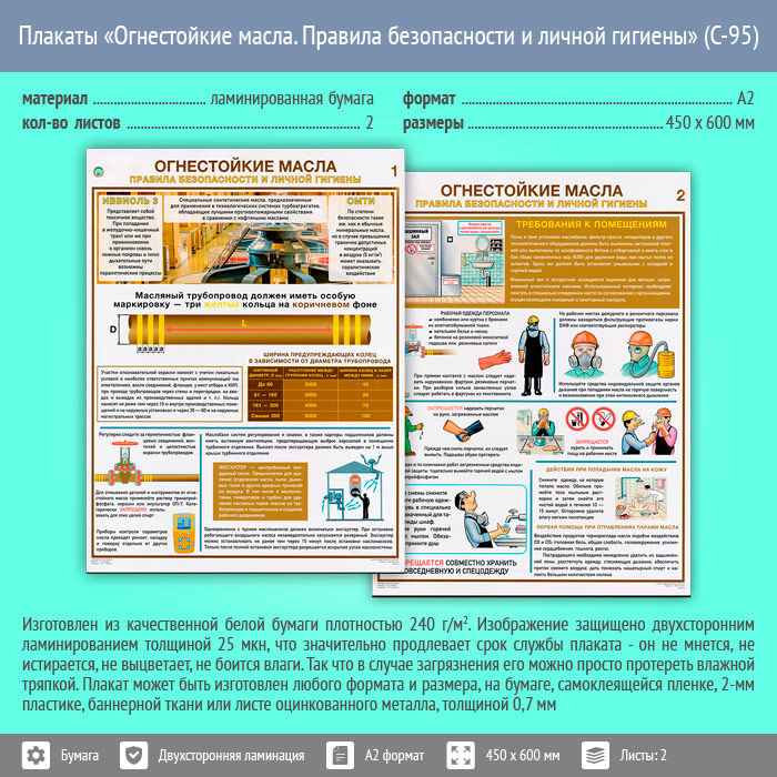 Плакаты «Огнестойкие масла. Правила безопасности и личной гигиены» (С-95, ламинированная бумага, А2, 2 листа) в Старом Осколе купить