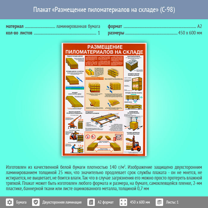 Плакат «Размещение пиломатериалов на складе» (С-98, ламинированная бумага, А2, 1 лист) в Старом Осколе купить