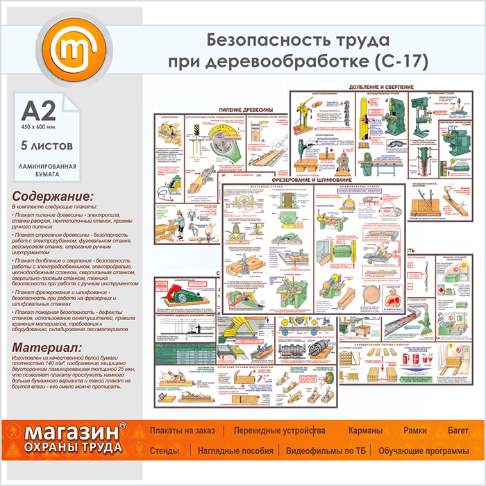 Плакаты «Безопасность труда при деревообработке» (С-17, ламинированная бумага, А2, 5 листов) в Старом Осколе купить