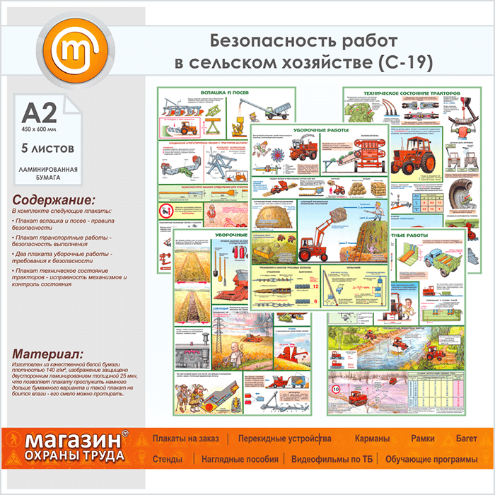 Плакаты «Безопасность работ в сельском хозяйстве» (С-19, ламинированная бумага, А2, 5 листов) в Старом Осколе купить
