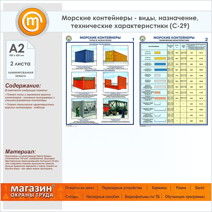 Плакаты «Морские контейнеры - виды, назначение, технические характеристики» (С-29, ламинированная бумага, А2, 2 листа) в Старом Осколе купить