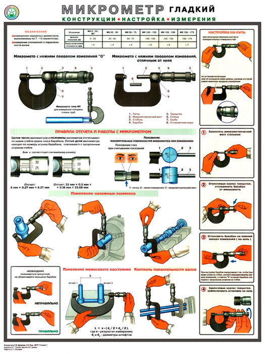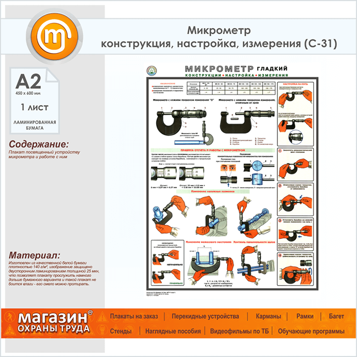 Плакат «Микрометр - конструкция, настройка, измерения» (С-31, ламинированная бумага, А2, 1 лист) в Старом Осколе купить