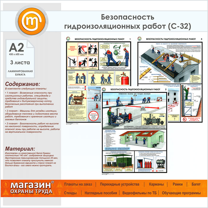 Плакаты «Безопасность гидроизоляционных работ» (С-32, ламинированная бумага, А2, 3 листа) в Старом Осколе купить