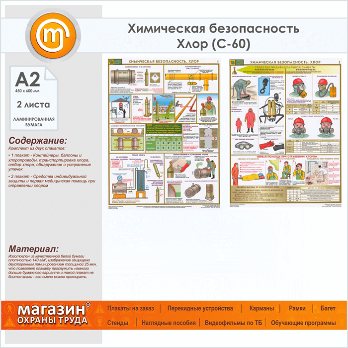 Плакаты «Химическая безопасность. Хлор» (С-60, ламинированная бумага, А2, 2 листа) в Старом Осколе купить