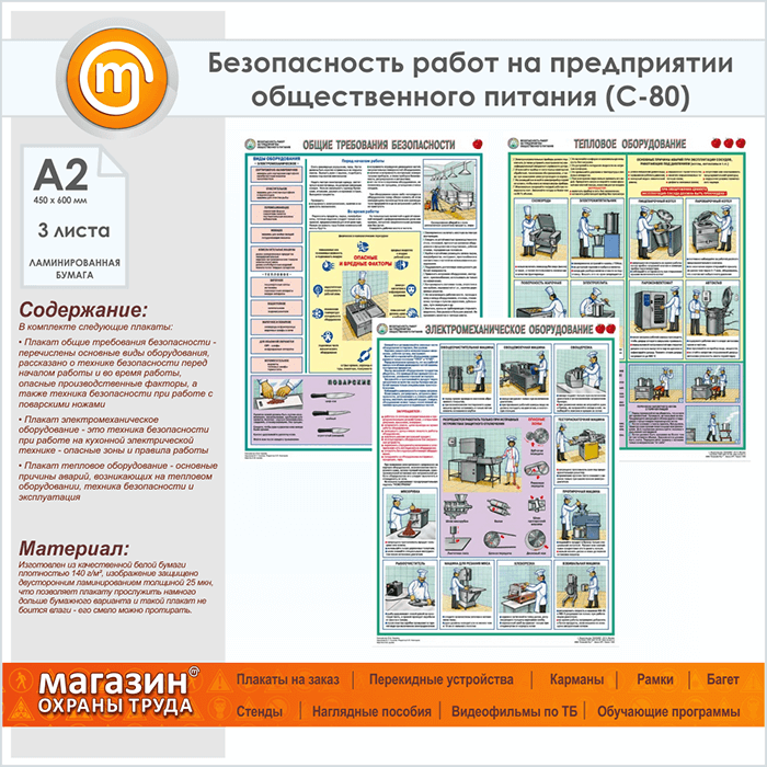 Плакат « Правила охраны труда на предприятии общественного питания» (С-80, ламинированная бумага, А2, 3 листа) в Старом Осколе купить
