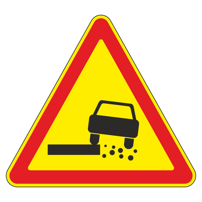 Дорожный знак 1.19 «Опасная обочина» (временный) (металл 0,8 мм, III типоразмер: сторона 1200 мм, С/О пленка: тип Б высокоинтенсивная) в Старом Осколе купить