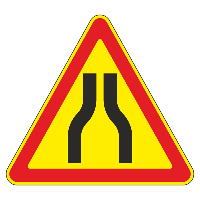 Дорожный знак 1.20.1 «Сужение дороги» (временный) (металл 0,8 мм, III типоразмер: сторона 1200 мм, С/О пленка: тип В алмазная) в Старом Осколе купить