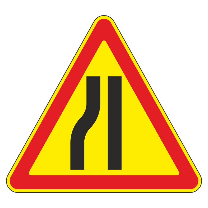 Дорожный знак 1.20.3 «Сужение дороги» (временный) (металл 0,8 мм, III типоразмер: сторона 1200 мм, С/О пленка: тип А коммерческая) в Старом Осколе купить