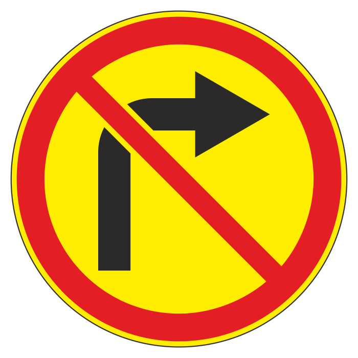 Дорожный знак 3.18.1 «Поворот направо запрещен» (временный) (металл 0,8 мм, III типоразмер: диаметр 900 мм, С/О пленка: тип Б высокоинтенсивная) в Старом Осколе купить